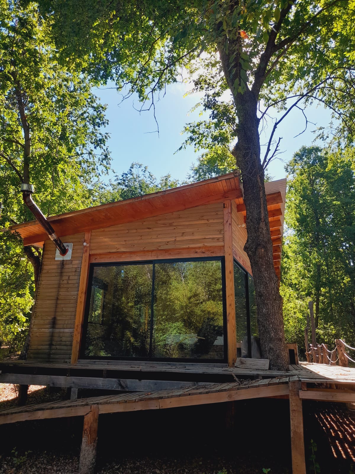 Disfruta de nuestra acogedora cabaña ecológica, diseñada para ofrecer confort mientras cuida del medio ambiente. Equipada con todas las comodidades y funcionando completamente con energía solar.