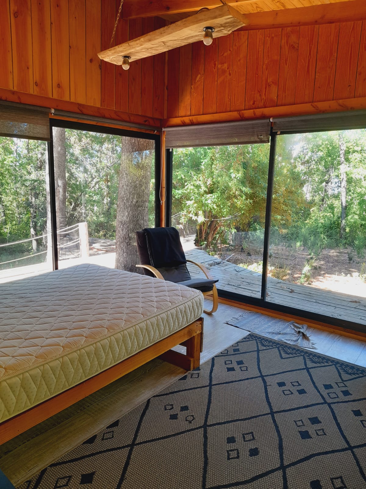 La cabaña tiene un atractivo diseño rústico, está sumergida en un monumental bosque nativo de la cordilleras del maule.
